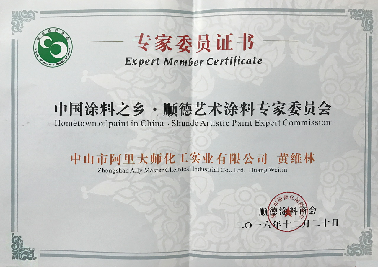 365bet软件_365500_365bet进入官网 大师加入中国涂料之乡·顺德艺术涂料专家委员会,并荣获艺术涂料专家委员会证书。厚重的专家委员会证书意味着365bet软件_365500_365bet进入官网 大师将有计划、有组织地把艺术涂料推向市场前沿,同时将协助规范行业标准。